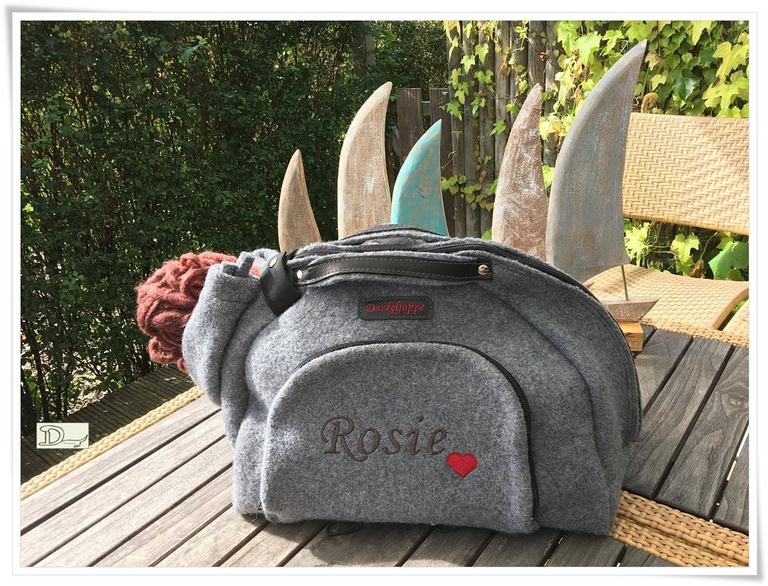 Vordertasche mit Reißverschluss ist ergänzbar, Stickwunsch